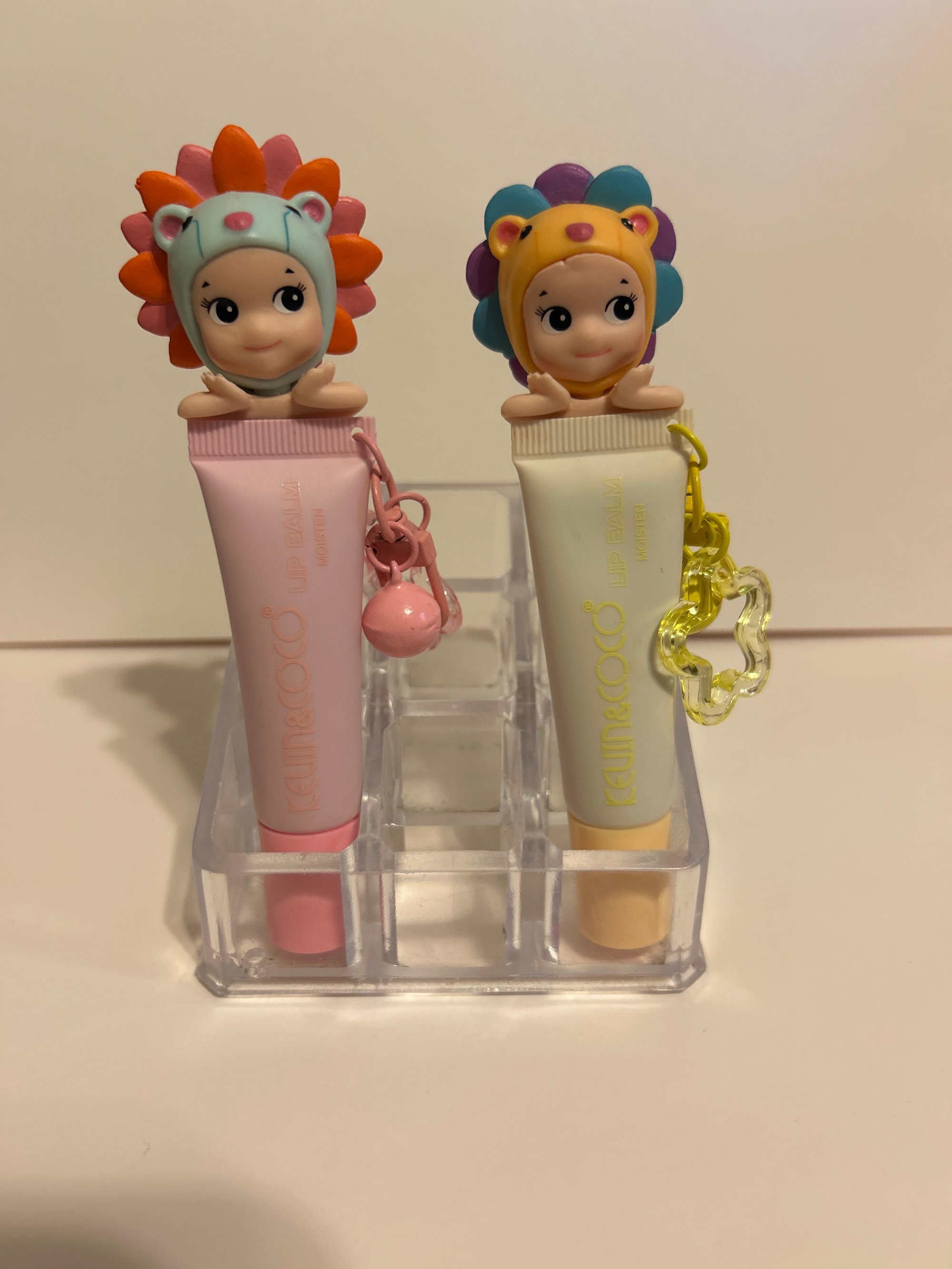 Sonny Angel inspired lippies. Comes with a Sonny Angel from the Flower gift series in a hipper style attached to a lip balm keychain. Perfect for the on the girl girlie who always must look her best 💋.